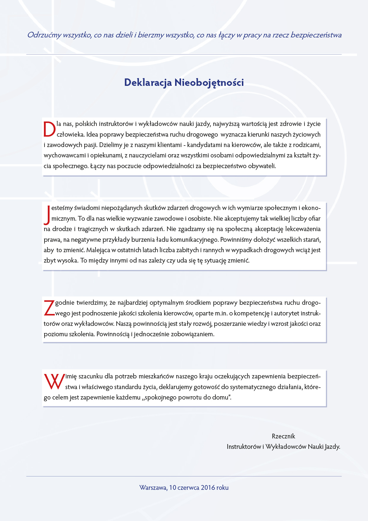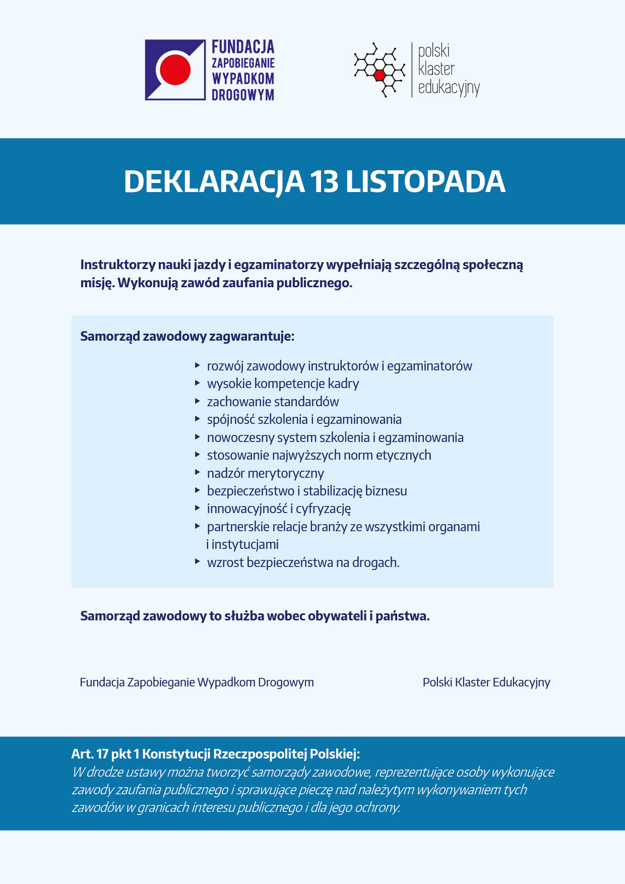 Rzecznik Instruktorów i Wykładowców Nauki Jazdy oraz Zespół Ekspertów pełnią swe funkcje społecznie i nieodpłatnie.